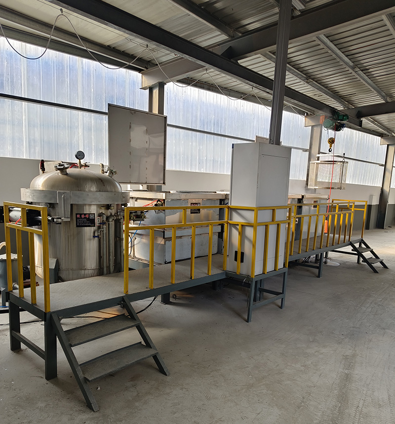 ●濕真空處理:用真空把膠液吸進浸滲罐內,膠液的液面高出浸滲籃中零件40-50mm為準,繼續抽真空至-0.098mpa左右,保壓5分鐘,然后緩慢卸下至常壓。